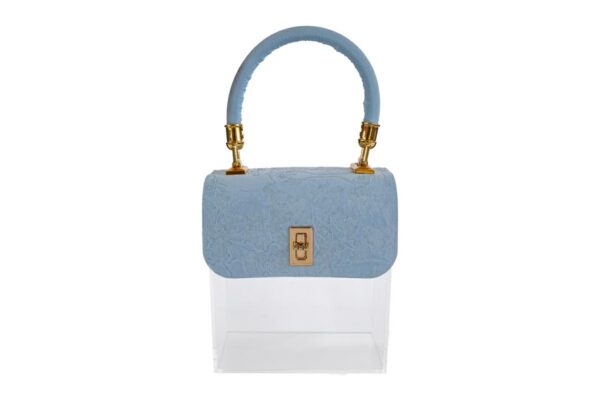SCATOLA BORSA PLEXY CELESTE FLOWERS 16x10x18CM