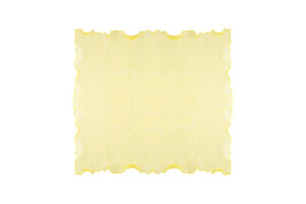 Questo velo per bomboniere in organza si distingue per il colore giallo tenue e il bordo ondulato, che dona un tocco raffinato alle confezioni. Ideale per creare sacchetti portaconfetti o decorazioni personalizzate, il formato 60×60 cm garantisce praticità e versatilità. La trasparenza dell’organza valorizza i contenuti interni e arricchisce l’allestimento di cerimonie o eventi speciali.