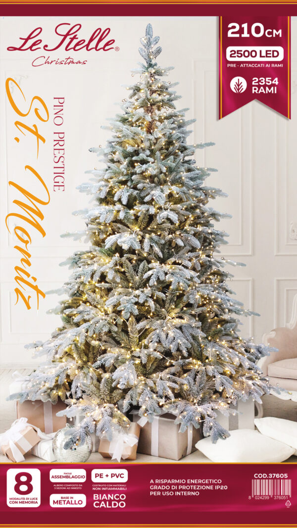 ALBERO NATALE INNEVATO ST.MORITZPE+PVC 2500LED 2354TIPS h.210xl.150CM