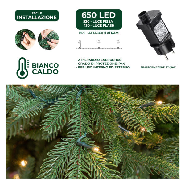 ALBERO NATALE SESTRIERE PE+PVC 650LED 20%FL.B. 3946TIPS h.240×160 CM