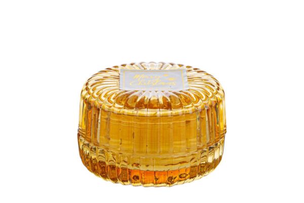 CANDELA SCATOLA VETRO NATALIZIA ORO d.8,5Xh.5,5CM