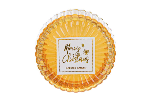 Candela scatola vetro oro, elegante bomboniera natalizia in cera, ideale per valorizzare gli ambienti con un tocco raffinato e festivo durante le festività.