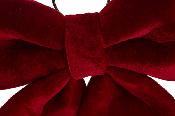 L’appendino fiocco in tessuto Bordeaux 28×30 cm si distingue per il design raffinato e la stoffa morbida, ideale come bomboniera per decorare ambienti durante il periodo natalizio. La tinta bordeaux valorizza addobbi, ghirlande o regali, offrendo un tocco elegante e praticità grazie alla facile applicazione.