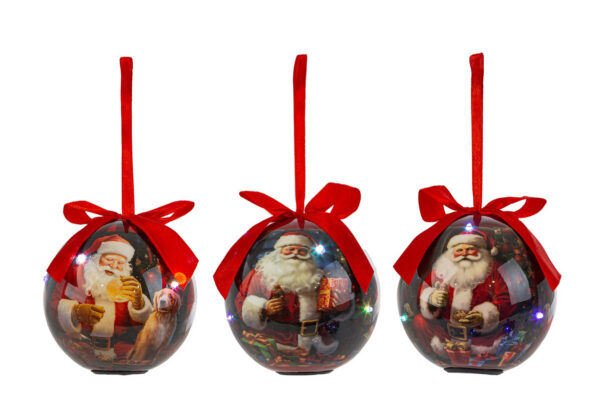 PALLINA PLASTICA LED DEC.BABBO NATALE 3ASS.DIAM.10CM