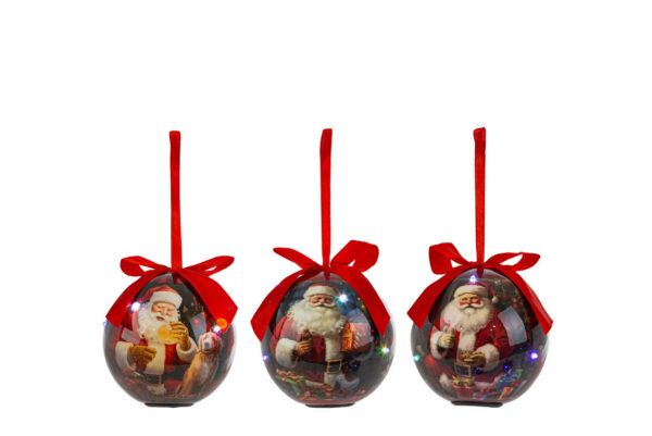 PALLINA PLASTICA LED DEC.BABBO NATALE 3ASS.DIAM.8CM