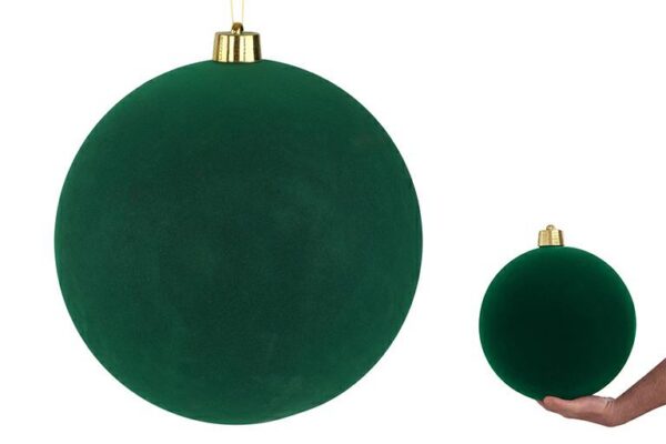 PALLINA PLASTICA VELLUTO diam.30CM VERDE si distingue per il suo aspetto raffinato: una sfera in vetro rivestita in velluto verde, dal diametro di 30 cm, ideale per valorizzare ogni albero di Natale. Perfetta come bomboniera, dona un tocco elegante e moderno all’ambiente grazie alla superficie vellutata e alla forma classica. L’anello dorato facilita l’appensione, mentre il materiale in vetro garantisce brillantezza e qualità percepita, rendendola una scelta apprezzata per decorazioni natalizie ricercate.