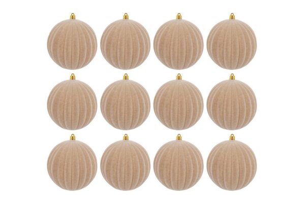 SET 12PZ PALLINA PLASTICA VELLUTO “WATERMELON” diam.10CM BEIGE