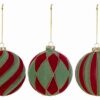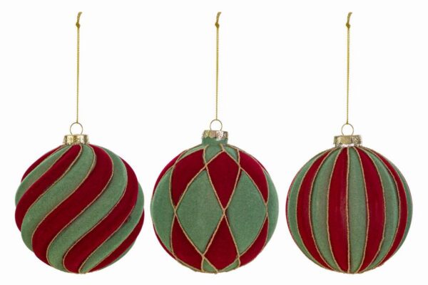 Il SET 3 PALLINE ARABESQUE VERDE SALVIA diam.10CM è composto da eleganti bomboniere natalizie in vetro, caratterizzate da motivi arabeggianti nei toni verde salvia e rosso. Ogni sfera, curata nei dettagli e dotata di gancio dorato, aggiunge un tocco raffinato e moderno alle decorazioni natalizie domestiche.
