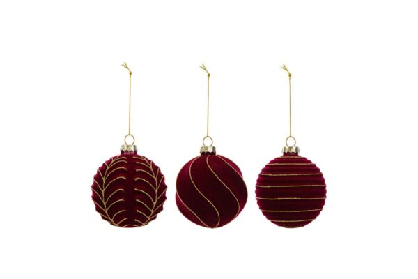 SET 3 PALLINE ASS.VETRO COL.BORDEAUX diam.8CM