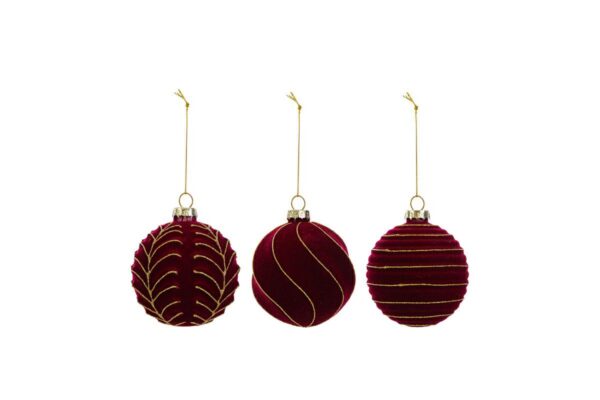 SET 3 PALLINE ASS.VETRO COL.BORDEAUX diam.8CM