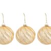 Il set comprende tre bomboniere natalizie in vetro dal diametro di 10 cm, caratterizzate da una raffinata finitura dorata. Queste palline, grazie al design elegante e ai dettagli brillanti, aggiungono un tocco di luce all’albero di Natale e valorizzano qualsiasi ambiente con stile moderno e ricercato.