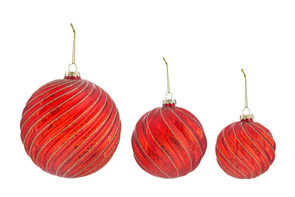 DECORAZIONI ALBEROSET 3 PALLINE ASS.VETRO COL.ROSSO diam.12CM