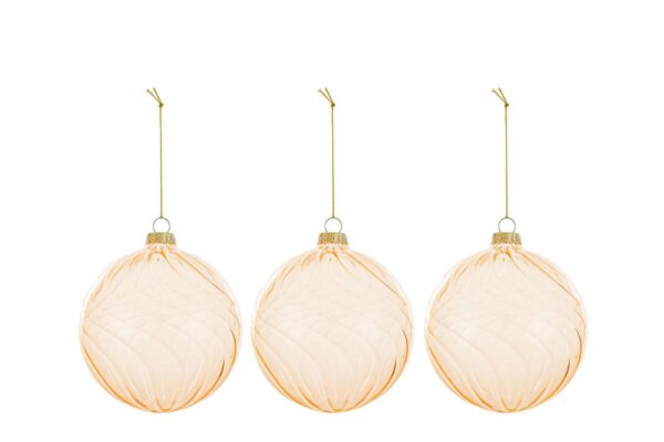 Il SET 3 PALLINE VETRO ORO diam.10CM è composto da eleganti sfere in vetro di colore oro, dal design raffinato e moderno. Queste bomboniere, ideali per il periodo natalizio, si distinguono per la finitura trasparente e le sottili decorazioni che catturano la luce, valorizzando qualsiasi ambiente. Pratiche da appendere, aggiungono un tocco ricercato a decorazioni natalizie di gusto contemporaneo.