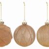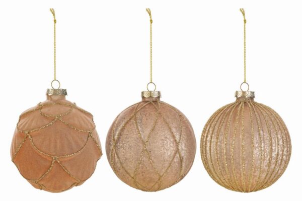 Il set comprende tre bomboniere natalizie in vetro di colore oro, dal diametro di 12 cm ciascuna. Ogni pallina presenta dettagli decorativi raffinati e finiture luminose, ideali per rendere speciale l’albero di Natale o arricchire centrotavola e composizioni. L’eleganza del vetro oro valorizza ogni ambiente durante il periodo natalizio.