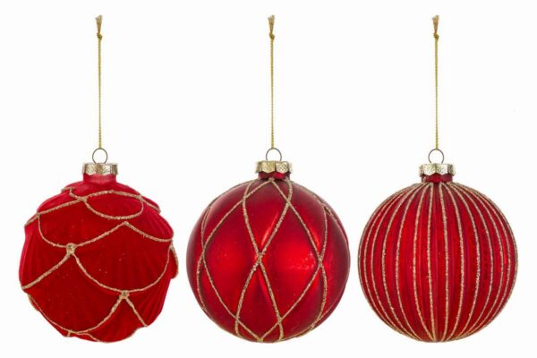 DECORAZIONI ALBEROSET 3 PALLINE VETRO COL.ROSSO diam.12 CM