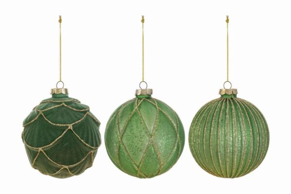 Il set da 3 palline in vetro verde, ciascuna con diametro di 10 cm, si distingue per il design elegante e moderno, caratterizzato da motivi geometrici in rilievo. Realizzate in vetro, sono pensate come bomboniere ideali per il periodo natalizio, perfette per decorare l’albero con un tocco raffinato e originale. Il colore verde e la lavorazione accurata aggiungono valore a ogni ambiente durante le feste.