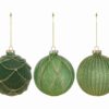 Il set da 3 palline in vetro verde dal diametro di 8 cm offre una soluzione raffinata per impreziosire la casa durante il periodo natalizio. Ogni bomboniera presenta finiture decorative diverse e dettagli dorati, ideali per arricchire l’albero di Natale con un tocco moderno ed elegante, combinando armoniosamente colore e brillantezza.