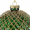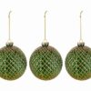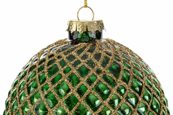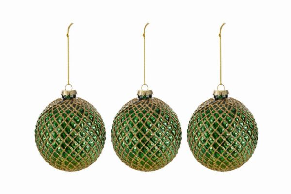 Il set propone tre raffinate bomboniere natalizie in vetro verde da 8 cm, ideali per arricchire con eleganza l’albero o una composizione decorativa. Caratterizzate da una lavorazione a reticolo dorato, ogni pallina si distingue per il design moderno e la qualità dei materiali, donando un tocco distintivo all’atmosfera delle festività.