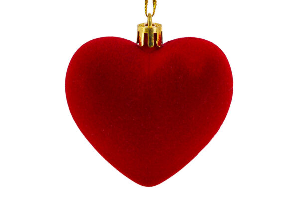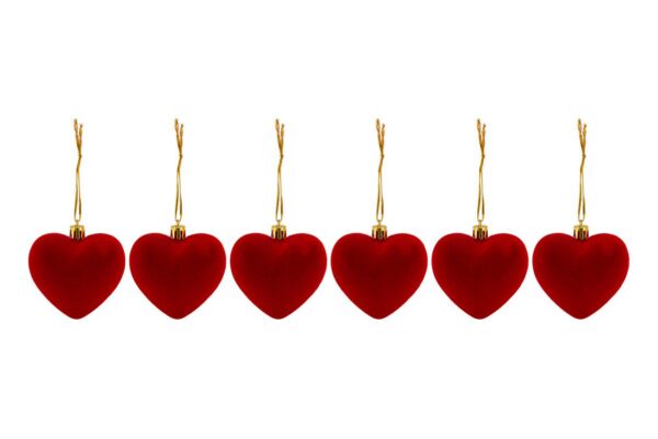 SET 6 PZ PALLINA VELLUTO CUORE ROSSO 6CM