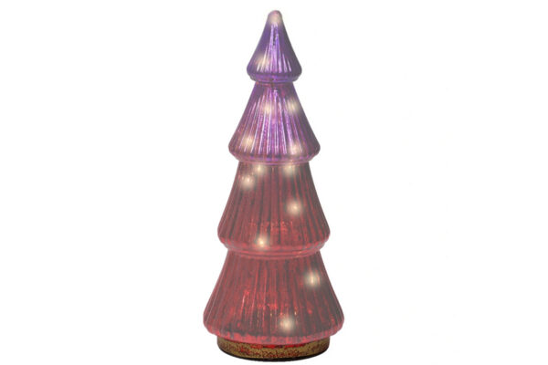ALBERO NATALIZIO VETRO CON LUCI COL.ROSA 11xh.25CM