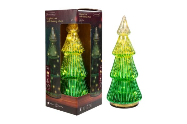 ALBERO NATALIZIO VETRO CON LUCI COL.VERDE 11xh.25CM