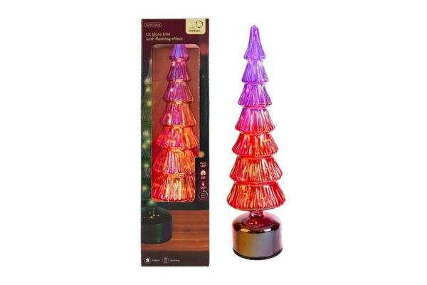 ALBERO ROTANTE NATALIZIO VETRO CON LUCI COL.ROSA 11xh.39CM