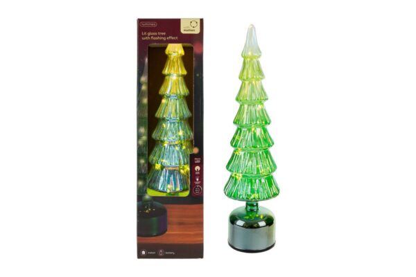 ALBERO ROTANTE NATALIZIO VETRO CON LUCI COL.VERDE 11xh.39CM