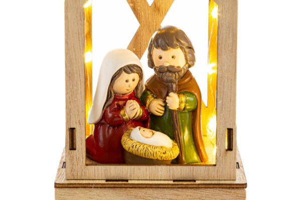 APPENDINO SACRA FAMIGLIA RESINA COLORATA LANTERNA LEGNO 9,5x7xh.17,5CM