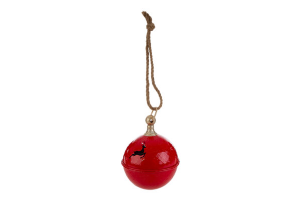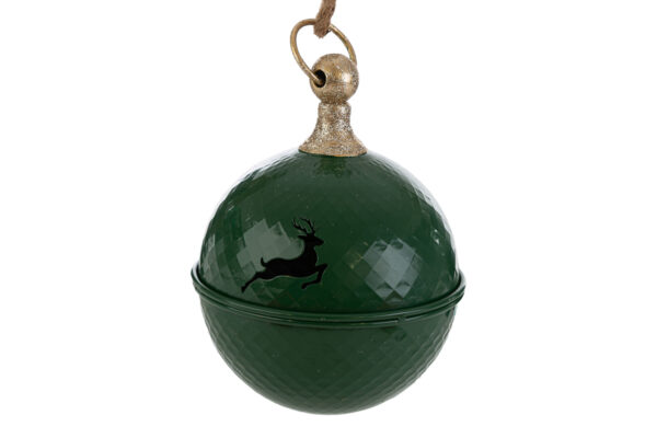 Appendino sfera natalizia in metallo, disponibile in due varianti, misura 16,5×16,5×22 cm, ideale come bomboniera elegante e originale per il periodo natalizio.