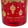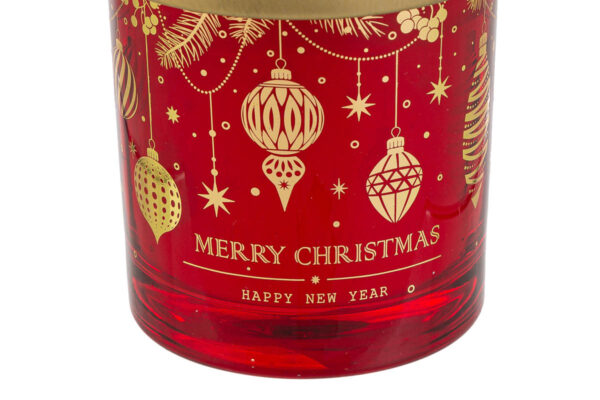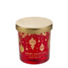 Barattolino in vetro rosso con candela profumata ideale come bomboniera per il periodo natalizio, unisce atmosfera elegante e fragranza delicata in un formato compatto.