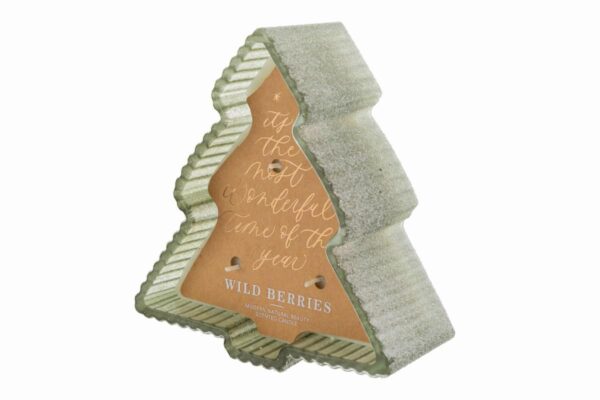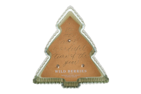 Candela natalizia a forma di albero in vetro, realizzata in cera, ideale come elegante bomboniera per il periodo natalizio e raffinata decorazione stagionale.