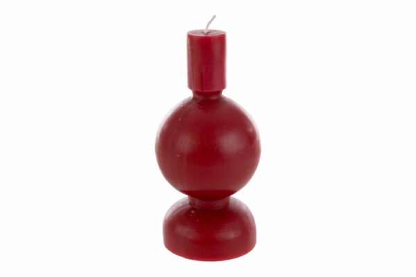 Candela sfera in cera rossa, ideale come bomboniera natalizia, dona un tocco elegante e festivo agli ambienti con la sua forma moderna e raffinata.