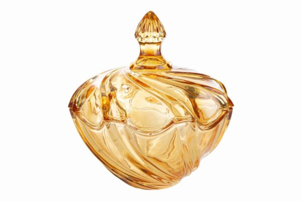 Scatola in vetro con finitura oro, dal design moderno, ideale come elegante bomboniera per il periodo natalizio. Perfetta per aggiungere un tocco raffinato alla decorazione.