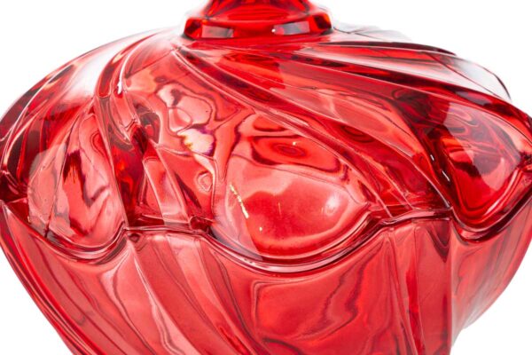 Bomboniera in vetro rosso, dimensioni 12,5xh.13 cm, perfetta per il periodo natalizio grazie all’eleganza moderna e alla luminosità del colore.