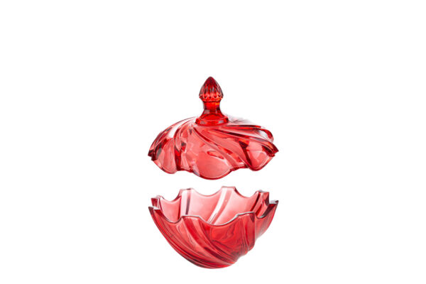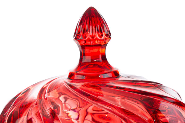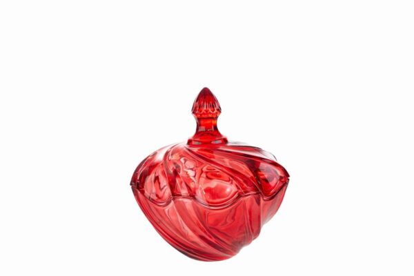 Bomboniera in vetro rosso, dimensioni 12,5xh.13 cm, perfetta per il periodo natalizio grazie all’eleganza moderna e alla luminosità del colore.