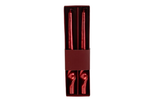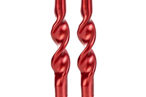Set composto da due candele natalizie rosse in cera, alte 25 cm, perfette come bomboniere raffinate e decorative durante il periodo delle festività natalizie.