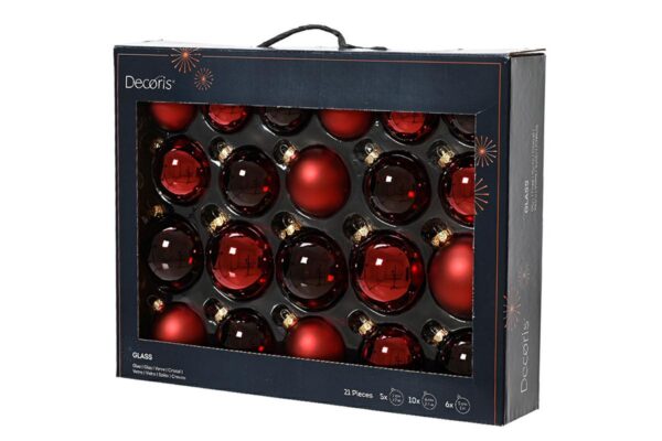 SET 21 PALLINE VETRO NATALE ROSSO SCURO ASS.d.7CM