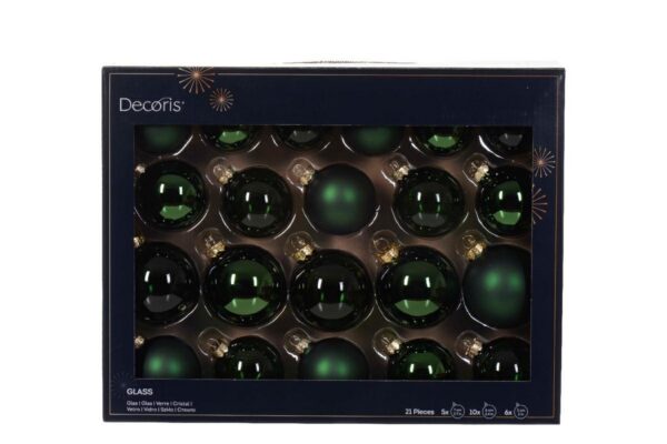 SET 21 PALLINE VETRO NATALE VERDE ASS.d.7CM