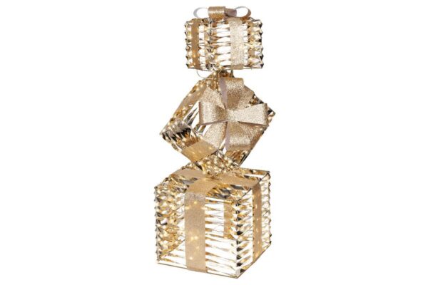 TRIS TORRE PACCHI NATALIZIO GOLD25x25xh.73CM 600LED/FLASH OUTDOOR