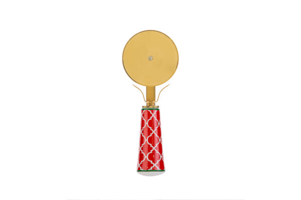 Taglia pizza in metallo da 15 cm, fornito con astuccio, ideale come bomboniera natalizia per aziende che desiderano offrire un regalo pratico e festivo.