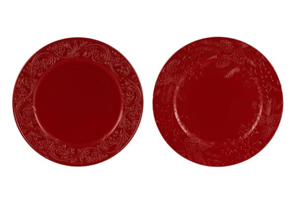 Vassoio in plastica rossa diametro 33 cm, ideale come bomboniera natalizia elegante e moderna, perfetto per presentazioni raffinate in contesti aziendali o eventi festivi.