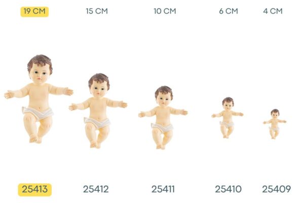 Il Gesù Bambino in resina da 19 cm si distingue per la lavorazione dettagliata e la finitura naturale che valorizza ogni presepe domestico. Realizzato in materiale resistente, è pensato come bomboniera ideale per il periodo natalizio, offrendo un tocco di devozione autentica e duratura. Il design accurato e le dimensioni ben proporzionate permettono di inserirlo facilmente sia in composizioni tradizionali che in soluzioni più moderne, rispondendo alle esigenze di chi cerca qualità e stile per le proprie celebrazioni natalizie.