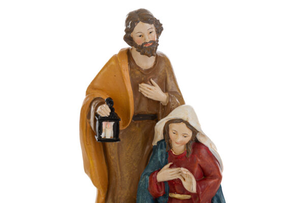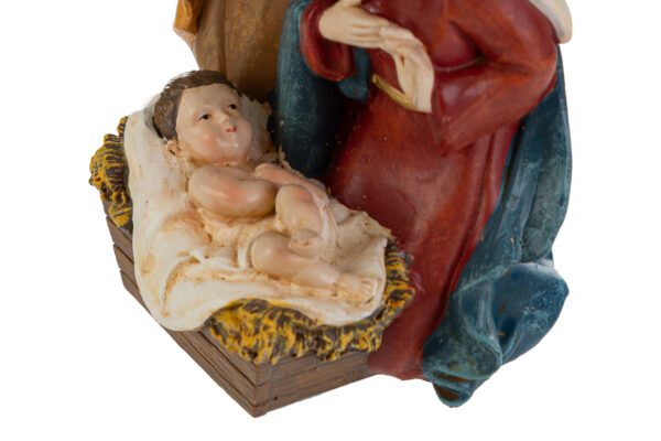 Questa natività in resina da 7x6xh.12 cm, finemente dipinta, raffigura la Sacra Famiglia in un’unica scena armoniosa. Ideale come bomboniera per il periodo natalizio, unisce tradizione e praticità grazie alle dimensioni compatte, che permettono una facile esposizione su qualsiasi superficie della casa.