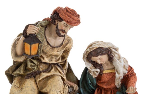 La Natività in resina 17,5x12xh.19 cm rappresenta la Sacra Famiglia con dettagli realistici e colori ricchi, ideale come bomboniera per il periodo natalizio. Il materiale resistente assicura una lunga durata, mentre le dimensioni compatte permettono una facile collocazione su mensole o all’interno di un presepe domestico, aggiungendo valore simbolico e decorativo.