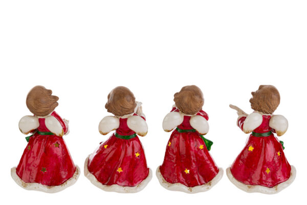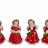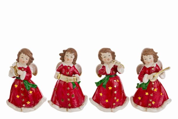 Il set ANGELO PORTACANDELE PORCELLANA ROSSO 4ASS.10x9xh.15CM presenta quattro bomboniere natalizie in porcellana smaltata di colore rosso, decorate con motivi dorati e forme di angeli musicisti. Pensate per contenere una piccola candela, aggiungono un tocco raffinato e festivo a tavole imbandite o ambienti domestici, valorizzando la tradizione e il calore tipici del periodo natalizio.