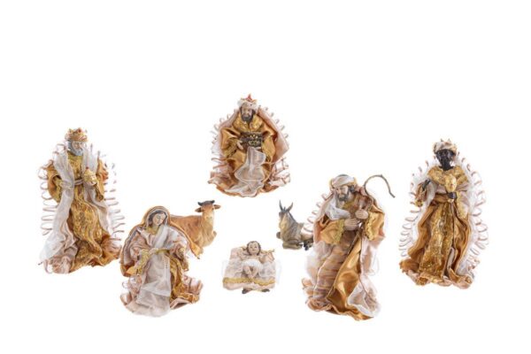 SET 8 PZ NATIVITA’ RESINA VESTITA ORO h.32,5 CM