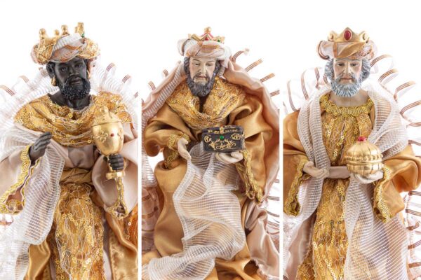 Il SET 8 PZ NATIVITÀ RESINA VESTITA ORO h.32,5 CM propone una scena natalizia tradizionale composta da otto statuine realizzate in resina, rifinite con dettagli dorati e abiti ricercati. Perfetto come bomboniera per il periodo natalizio, valorizza ogni ambiente grazie alle figure curate nei particolari, conferendo un tocco elegante e festoso alla casa.
