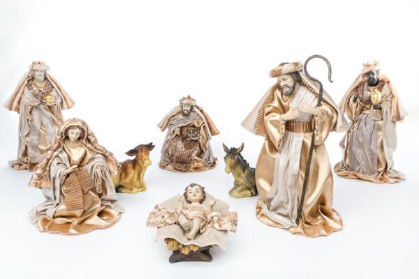 SET 8 PZ NATIVITA RESINA VESTITABEIGE h.32,5 CM