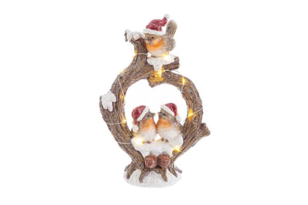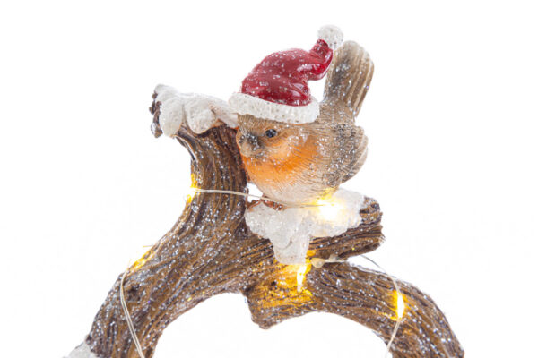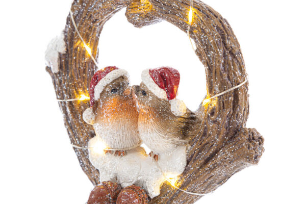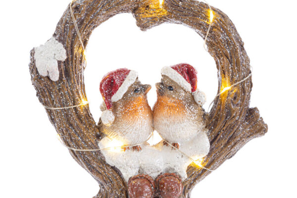 RAMETTO UCCELLINI NATALIZIO RESINA LED 15,5×7,5xh.23,5 CM
