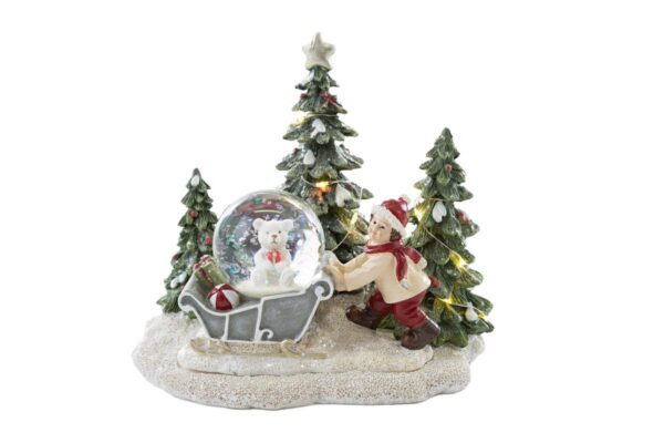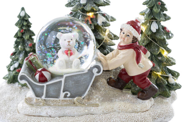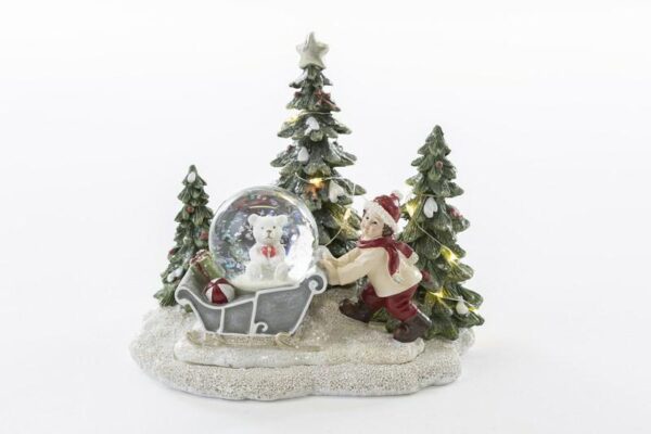 SOGGETTO NATALIZIO RESINA C/SFERA C/LED 16×12,5xh.14,5 CM